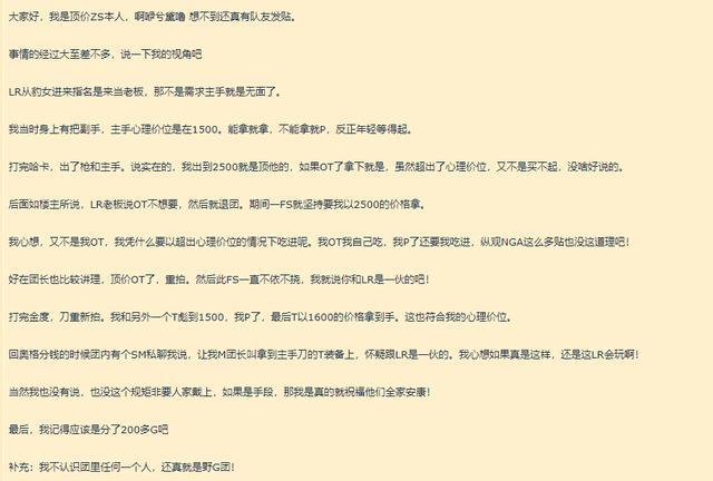 ÔÎÄÓм¸·½µÄÊӽǣ¬?åÍõÕßÕâÀï×ÛºÏÀ´ËµÏ¡£ÓÐÒ»¸ö׿¶?ñÀ?¼½ðÍÅ£?òÎ?ºÅ¹ýºó£¬¾ÍÓÐÒ»¸ö¿ñ±©Õ½¿ªÊ¼¹Ò»ú£¬ÓÚÊÇËûÃǽ«ËûÌßµôºóÍŶӱä³ÉÁË19/20¡£´òÍêÀÏ»¢BOSS£¬·¢ÏÖÒ»¸öÁÔÈËÔÚÊÀ½çƵµÀÖÐÐèÇó¹þ¿¨Ö÷ÊÖ£¬ËûÃDZ§×Å×éÏû·ÑµÄ¹Ûµã°ÑËû×éÁ˽øÀ´¡£½á¹ûÕæ³öÁ˺ó£¬ÁÔÈ˺ÍÁíÍâÒ»¸ö¿ñ±©Õ½»¥ÏྺÅÄ£¬¾ºÅļ۴Ó200һ·쵽ÁË2600£¬ÆÚ¼äÁÔÈ˶à´Î³°·íսʿ¡£µ±¼Û¸ñÂ䶨ºó£¬ÁÔÈËÒªÇóÏȽ»Ò××°±¸ÔÙ¸øÇ®£¬µ«Íų¤¼á³ÖÏÈÇ®ºó×°±¸£¬ÁÔÈ˾ÍÒÔ¶¥¼ÛOTµÄÀíÓÉÍËÍÅÁôÏÂÁËÆäËûÍæ¼Ò¡£