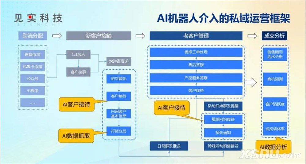 总结一下:AI并不能完全取代现有的私域业务流程。在将AI落地到私域运营中时,并不能颠覆现有的私域体系,而应该在已有的基础上进行优化和介入。