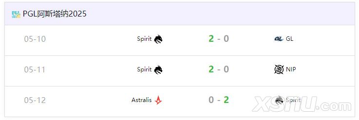 Spirit在PGL 阿斯塔纳小组赛中未尝败绩,率先晋级四分之一决赛,目前小组赛仍在进行中,所以他们接下来的对手还不得而知。