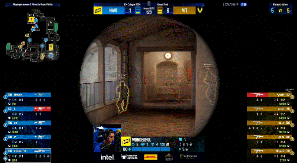 来到长枪局Vitality选择一波rushB,进入包点直接被NAVI刷屏带走。马上次回合Vitality再次进攻B区,但是无奈严防的NAVI枪线非常密集,再次丢分后Vitality拉开一波比分。NAVI也是紧急做出调整连连胜三局拿到赛点,最后Vitality将比赛追入加时。