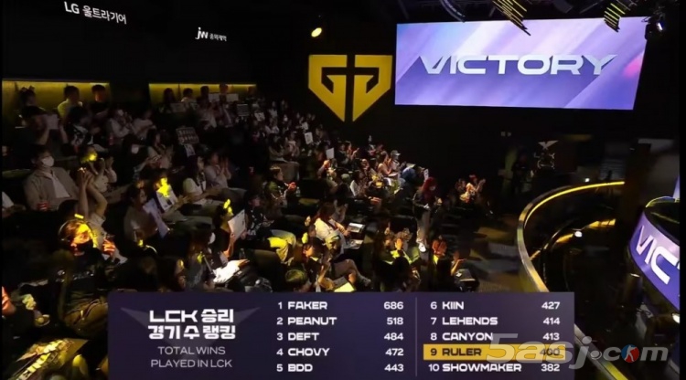 据官方数据统计,Ruler成为LCK史上第九位达成此成就的选手,更是现役AD选手中首位解锁400胜的选手。自2016年登上LCK舞台以来,这位28岁的老将始终保持着顶级竞技状态,先后效力于SSG、GEN等豪门战队,并斩获S7全球总决赛FMVP、三次LCK冠军等荣誉。